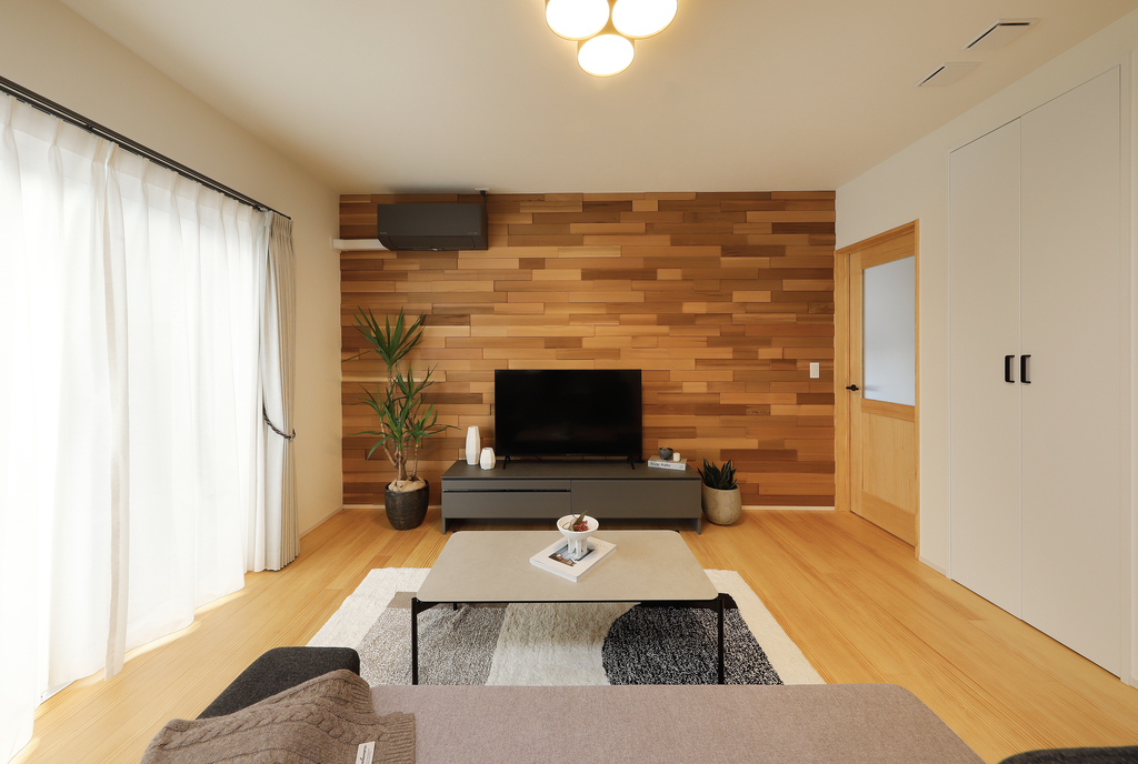 桜ヶ丘モデルハウスのリビングは、家族全員が自然と集まりたくなる心地よさ。