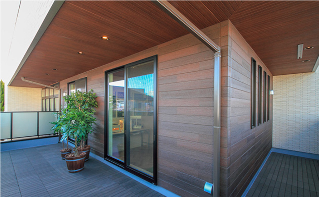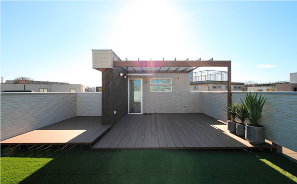 屋上庭園や緑化テラスなど、空を取り入れて空間を活かしたモデルハウス。