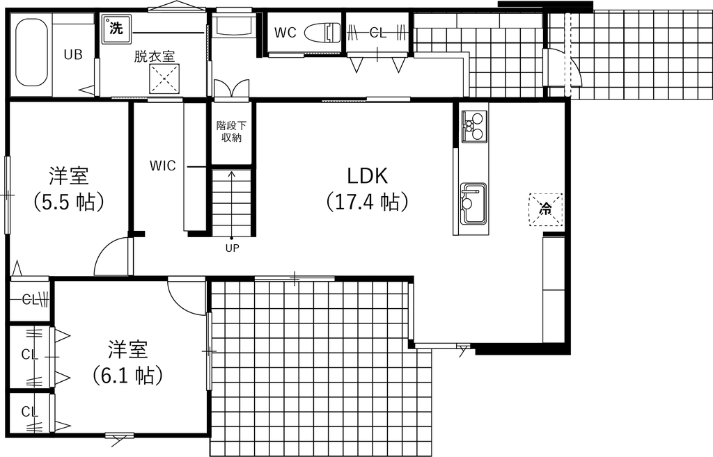 脱衣室→WIC→タイルデッキへの動線は