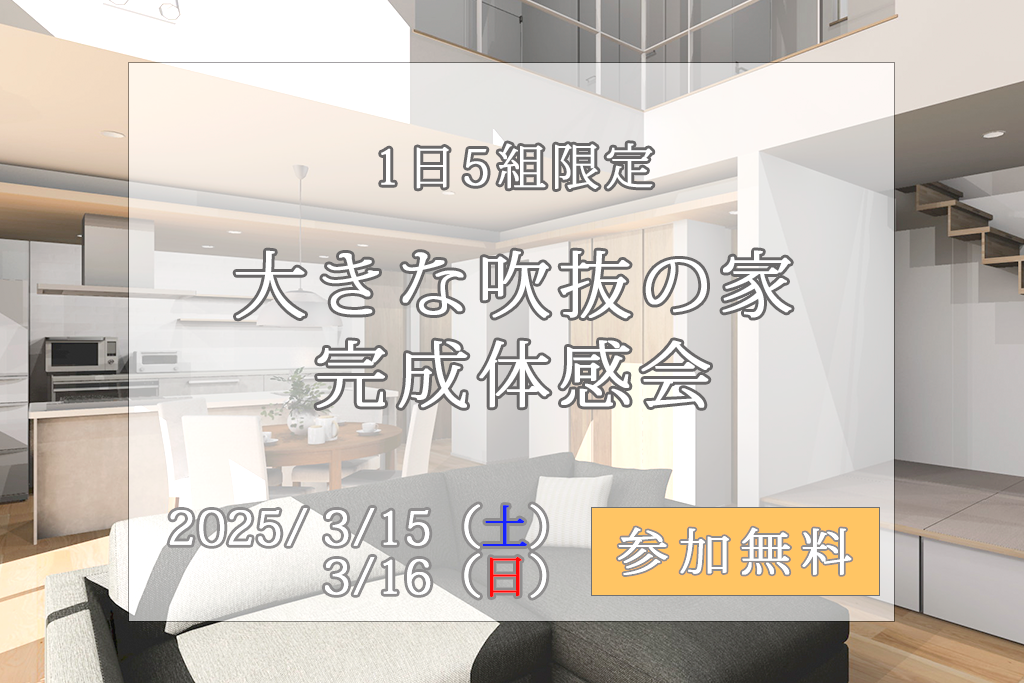 施主様のご厚意により、3月15日~16日の2日間、完成体感会を開催させていただくこととなりました。