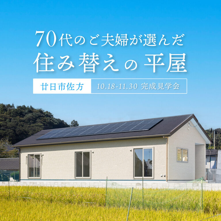 | タイトル | 【廿日市】70代のご夫婦が選んだ住み替えの平屋 完成見学会【10.18-11.30】 |