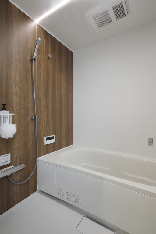 洗面用具やタオルをすっきり収納できる棚収納付きで、美しく・使いやすい身支度スペースです。