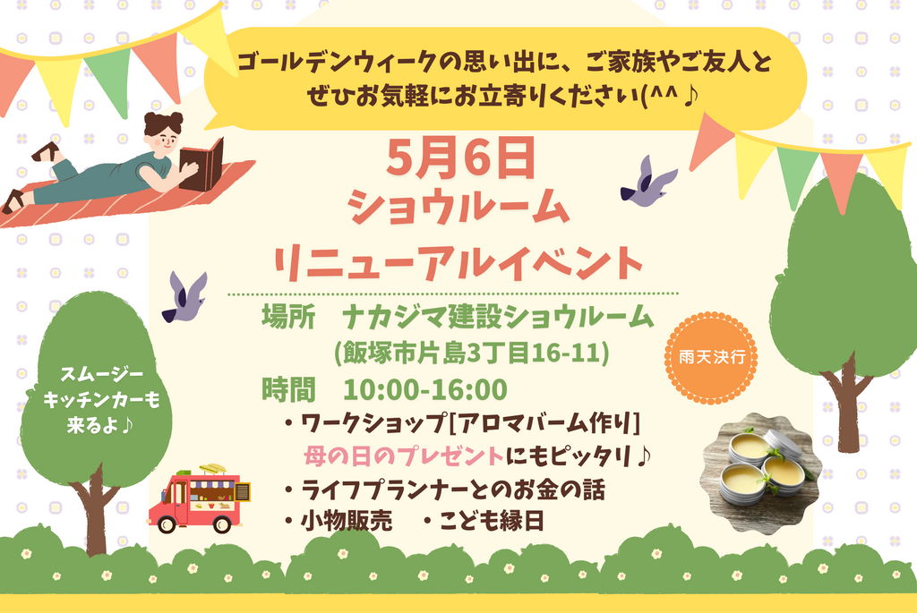 アロマバーム作りやスムージーキッチンカー、こども縁日など、盛りだくさんのイベントをご用意しています!