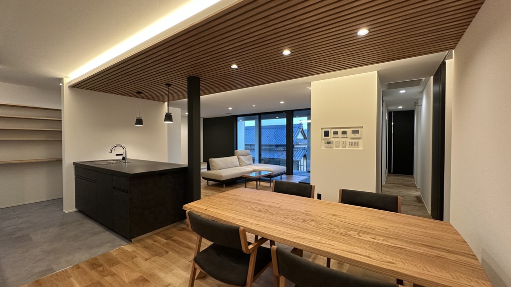 ダイニングとキッチンの折り下げ天井は