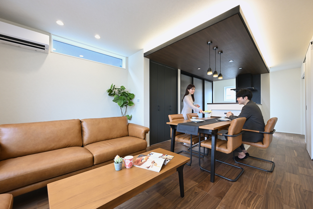 折下げ天井+間接照明で落ち着くオシャレ空間に。