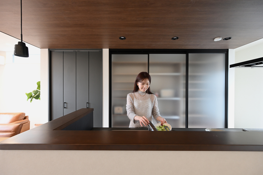 ●ブラック+ウォールナットでまとまったオシャレなキッチン