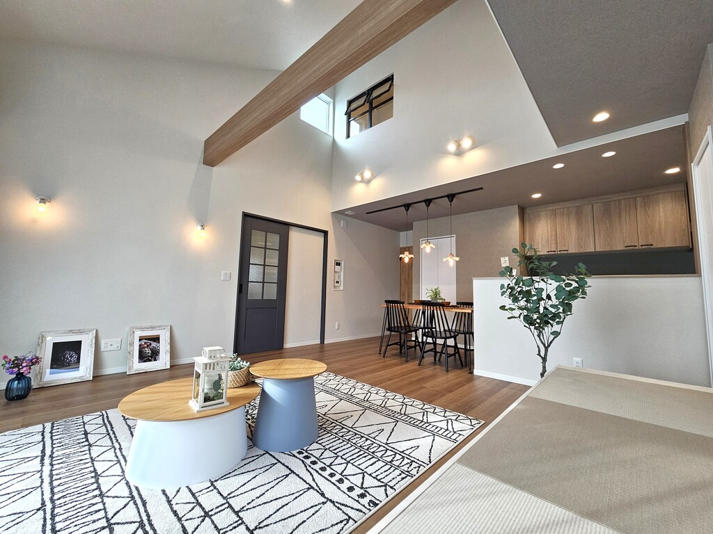 ワンフロアで3.6mの高天井が開放的なLDKです。