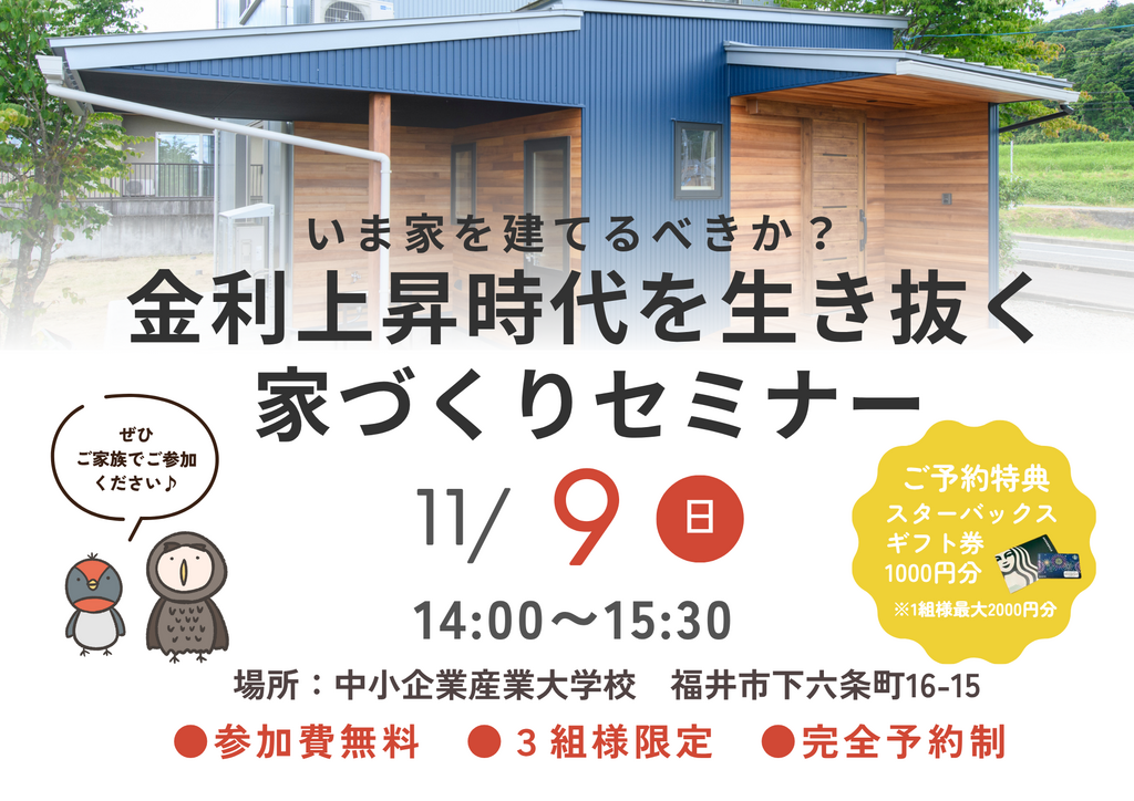 | タイトル | 【いま家を建てるべきか?】金利上昇時代を生き抜く家づくりセミナー |