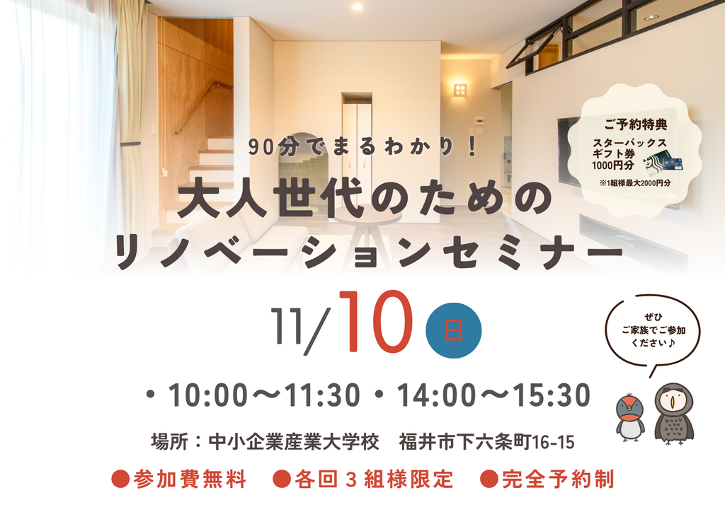 | タイトル | 90分でまるわかり!大人世代のためのリノベーションセミナー |