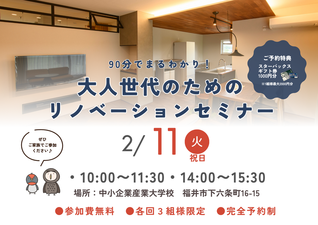 | タイトル | 90分でまるわかり!大人世代のためのリノベーションセミナー |