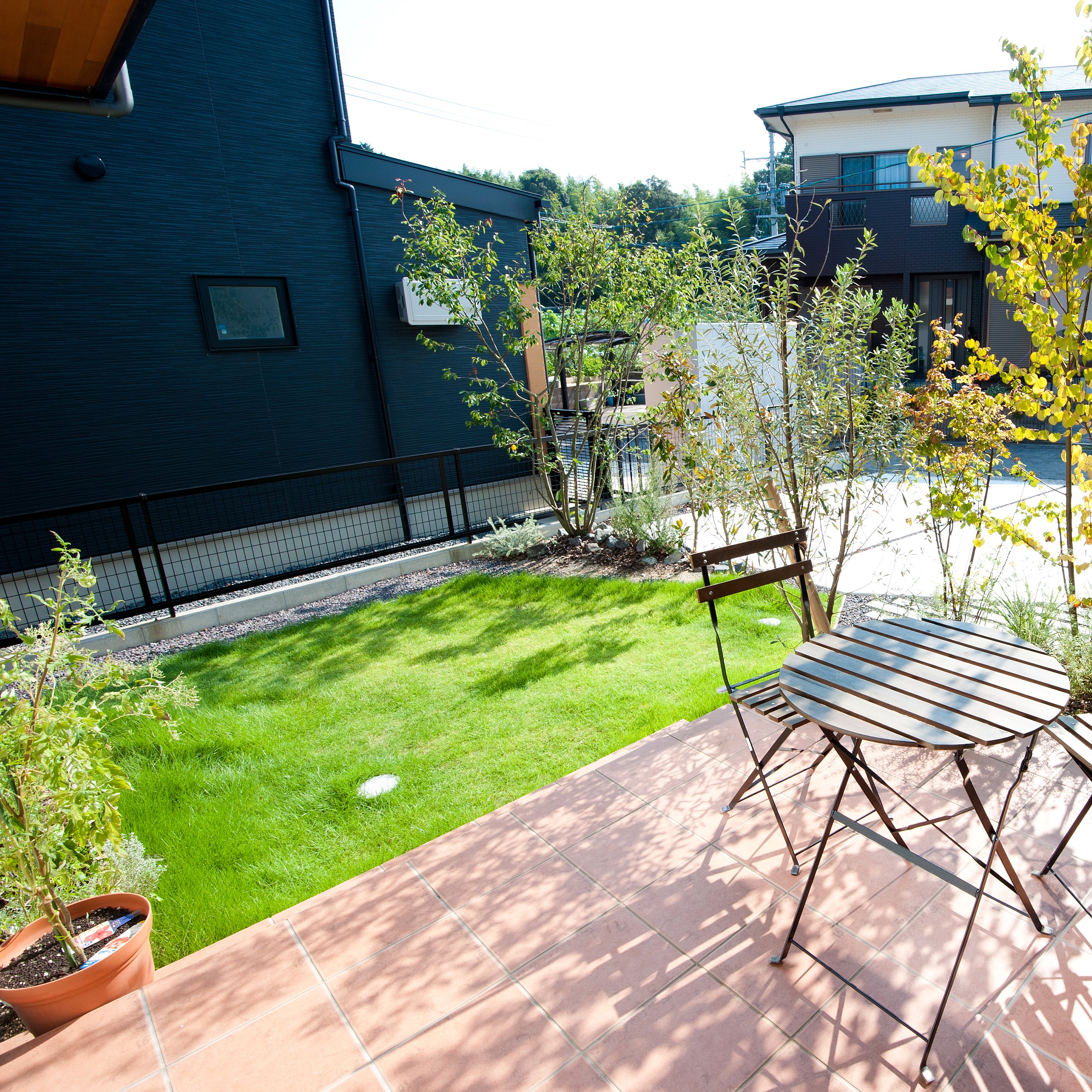 リビングとフラットにつながるタイルデッキが、ウチとソトの境界をなくします。家事をしながらでも、お庭でのびのび遊ぶ子供たちを見守れる安心感があります。太陽の光と風を感じながら、癒しの時間を過ごすことができます。