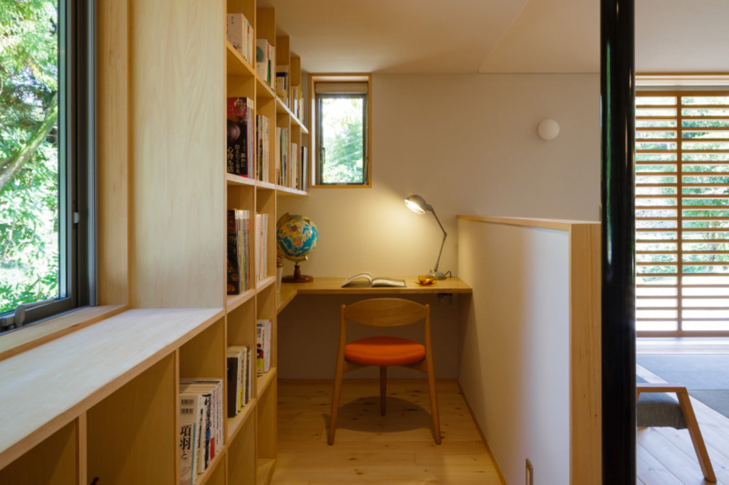 リビングのそばに、一段下がったコンパクトな書斎をつくりました。
