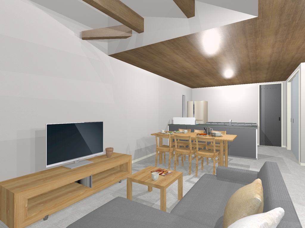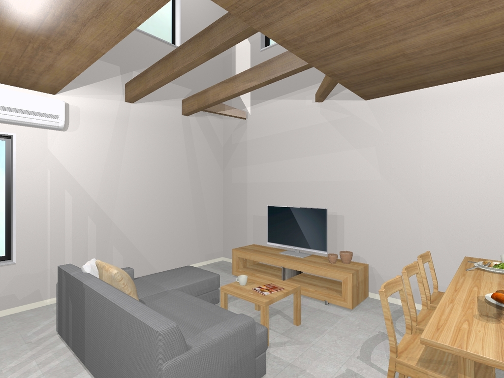 ■自然光が降り注ぐ広々20帖LDKと吹抜け 20帖の広々としたLDKは、計算された窓の配置と開放的な勾配天井、そして吹抜けが相まって、一日を通して自然光が降り注ぎ、心地よい風が通り抜けます。空間にさらなる広がりと奥行きを与え、ゆとりある暮らしを演出します。