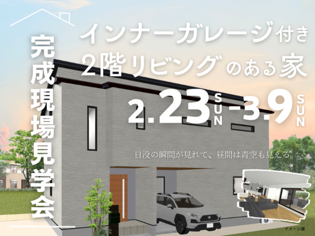 | タイトル | インナーガレージ付き2階リビングの家 完成現場見学会 |