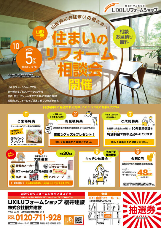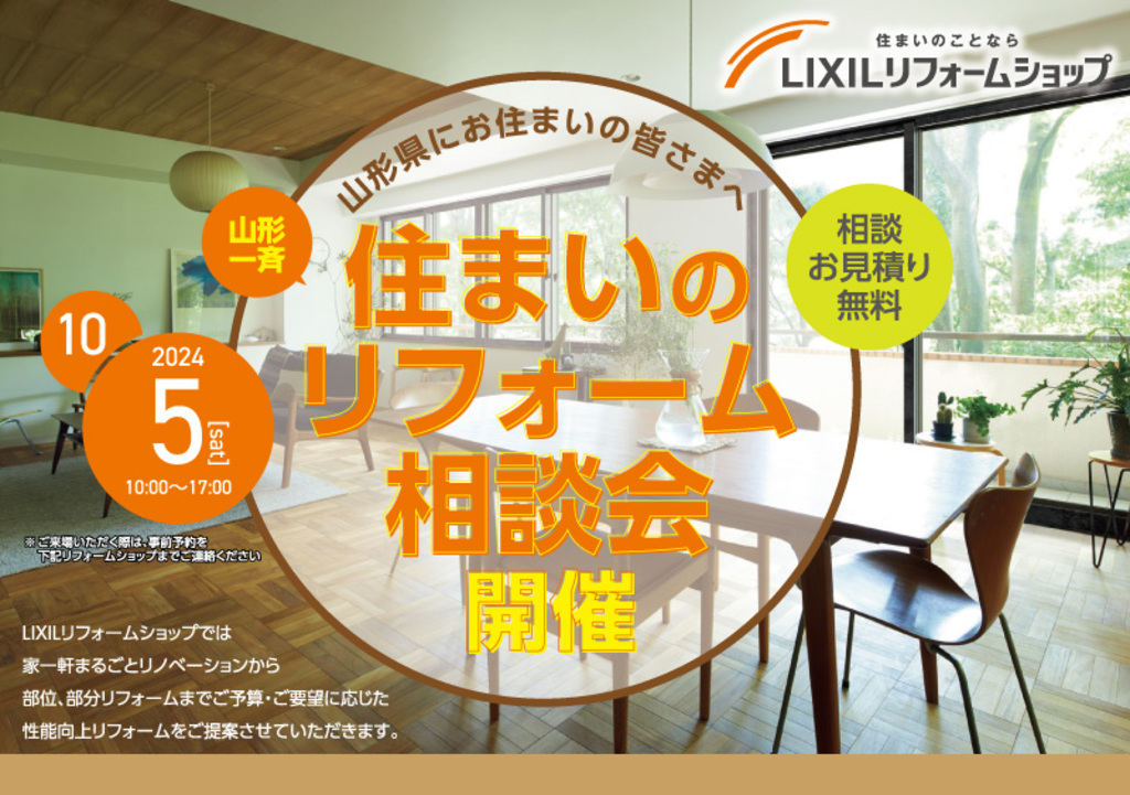 | タイトル | 山形県一斉開催【特典満載!住まいのリフォーム相談会】in LIXILショールーム |