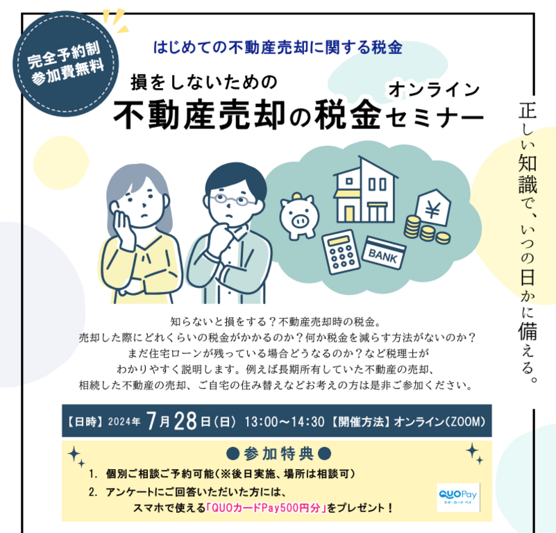 | タイトル | 損をしないための不動産売却の税金セミナー |