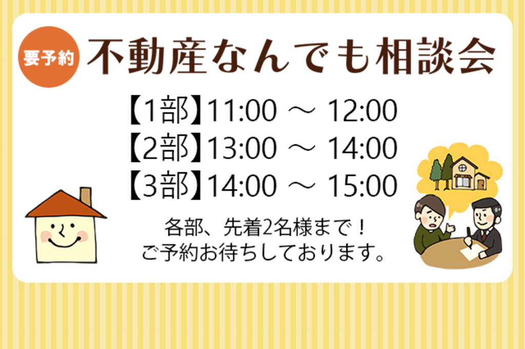 また、本予約ページは「不動産なんでも相談会」のみの予約フォームでございます。