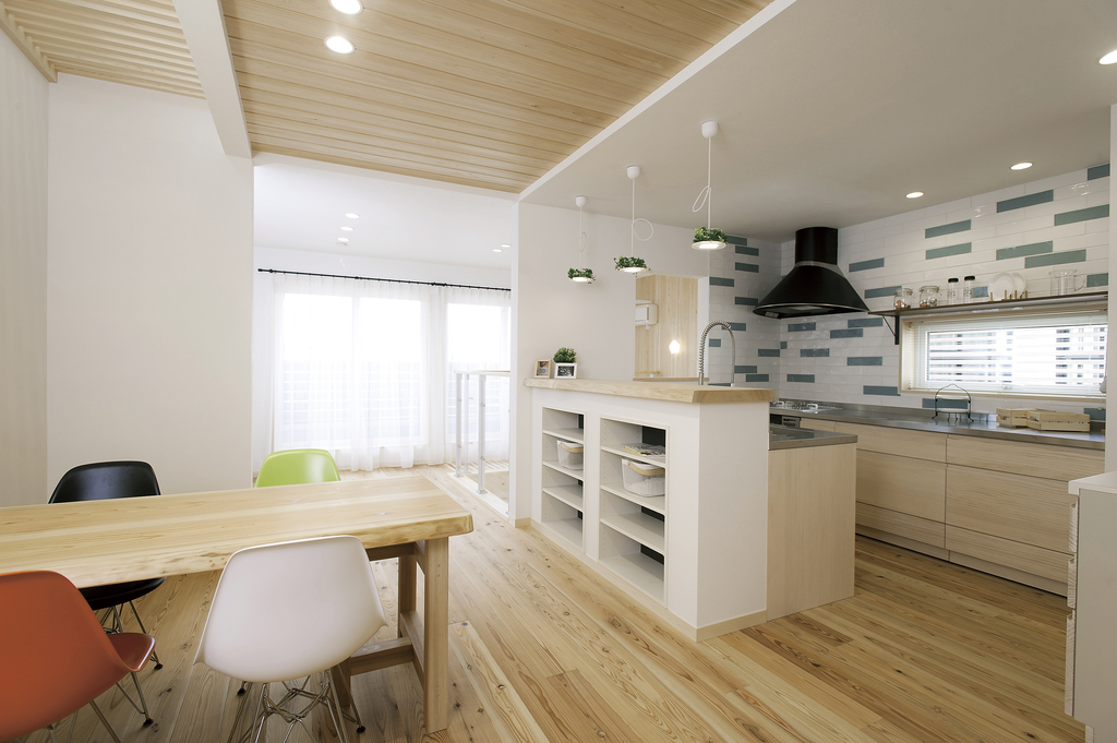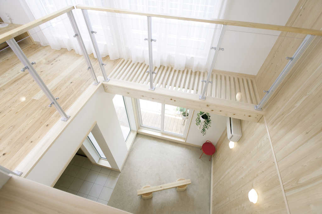 多摩産材を構造・内装にふんだんに使用したソーラーサーキットの展示場は、多摩産材PRを積極的に行う東京と共に運営する初のケースとなります。敷地内にはれれぞれライフステージの異なる世帯をイメージした2棟が建ち、土間リビングや、吹き抜け・ハイサイドライト、柱の現しなど、自然と融合する生活スタイルを提案しています。