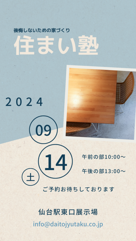 | タイトル | セミナー【宮城県仙台市宮城野区】家づくりを成功させるための「住まい塾」 |