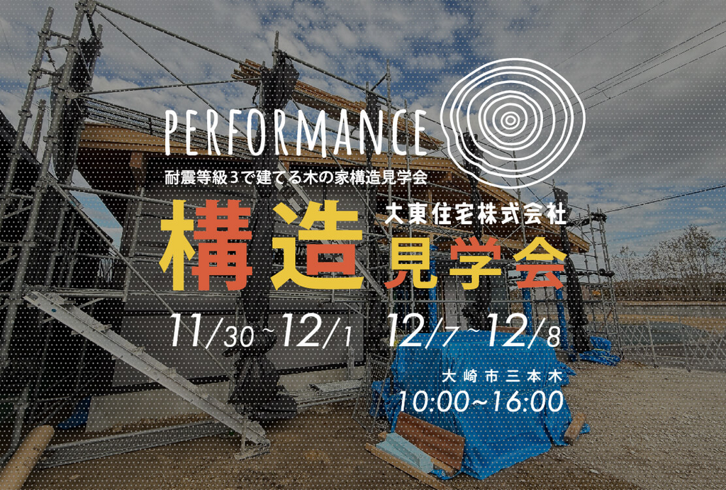 施工中現場にて、木造住宅の構造見学会を開催します。新築をお考えで木の家にご興味のある方は、この機会にぜひご参加ください。