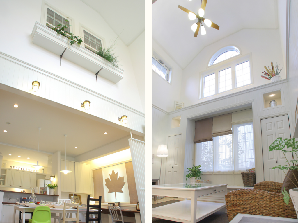 2階分の窓からたっぷりの自然光を取り込み、家族の集う空間を明るく演出。