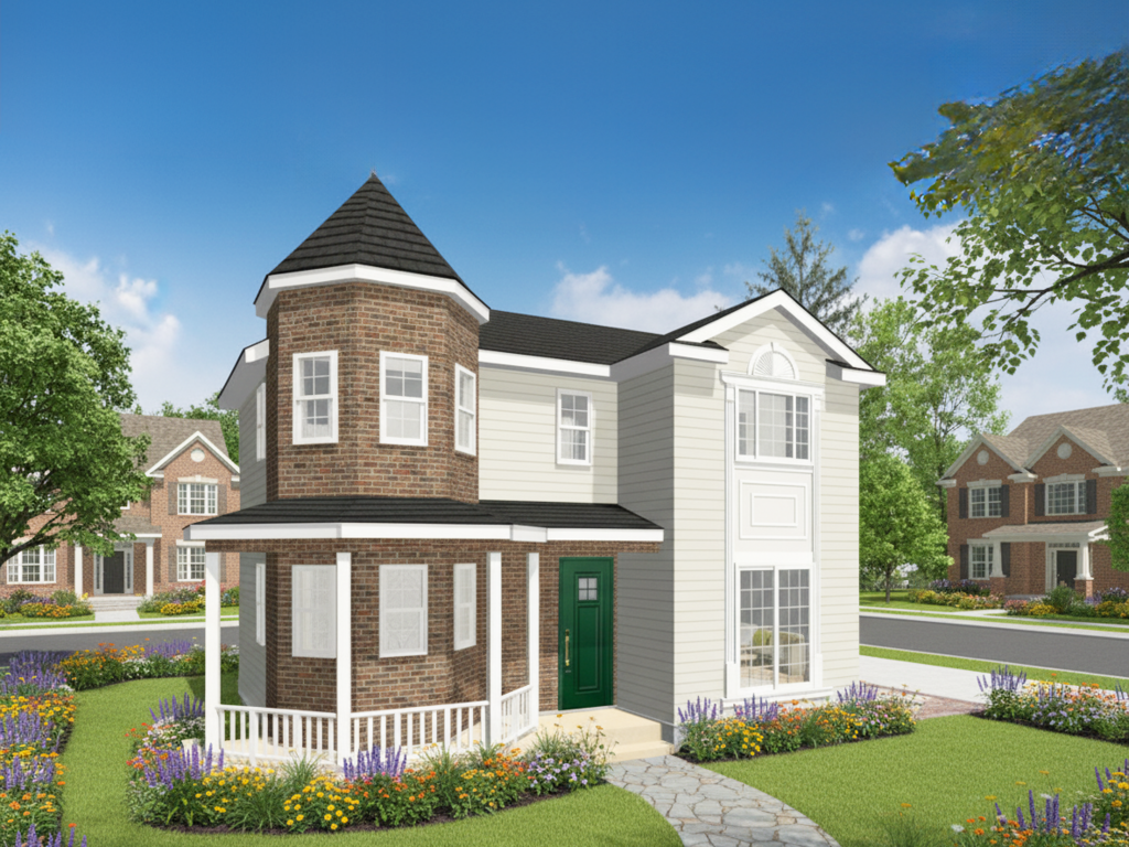 とんがり屋根の塔屋と屋根付きのカバードポーチが雨の日でも豊かな暮らしを!