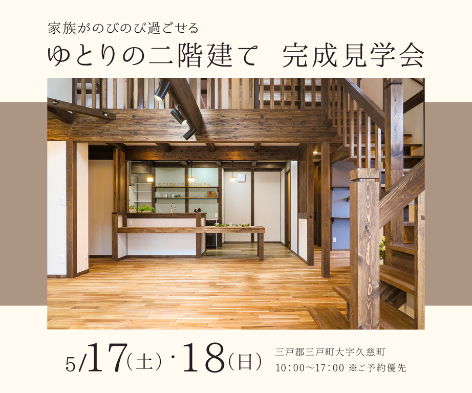 | タイトル | 5月17日・18日完成見学会/家族がのびのび過ごせるゆとりの2階建て |