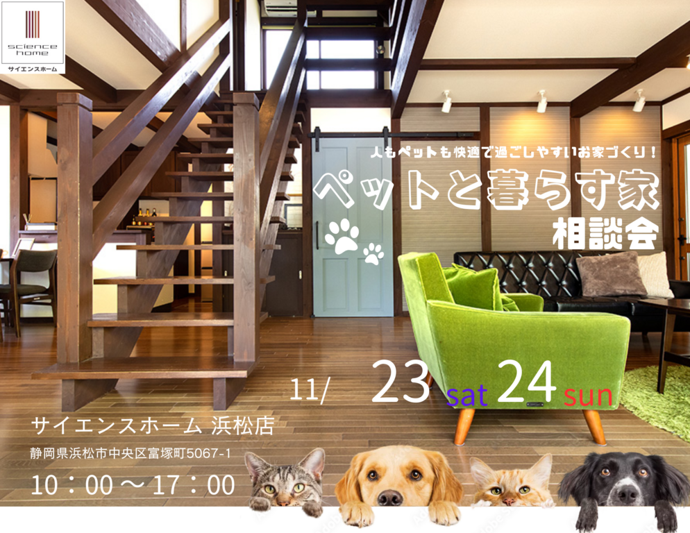 | タイトル | 人もペットも快適で過ごしやすいお家づくり!ペットと暮らす家相談会 |