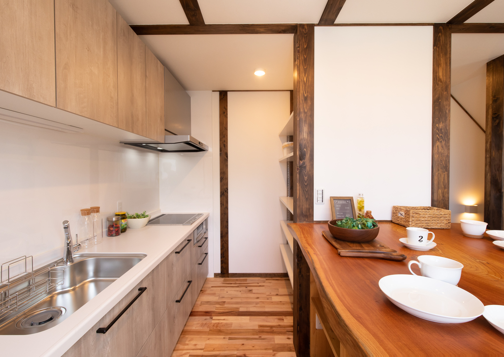 大人2人が同時に作業できる広々キッチンに、収納力バツグンのパントリー付!