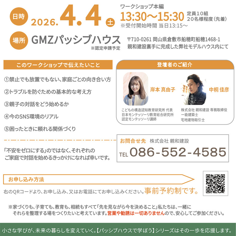正解を押しつけるワークショップではありません。不安をゼロにするのではなく、親子の対話を始めるきっかけを持ち帰っていただければと思っています。