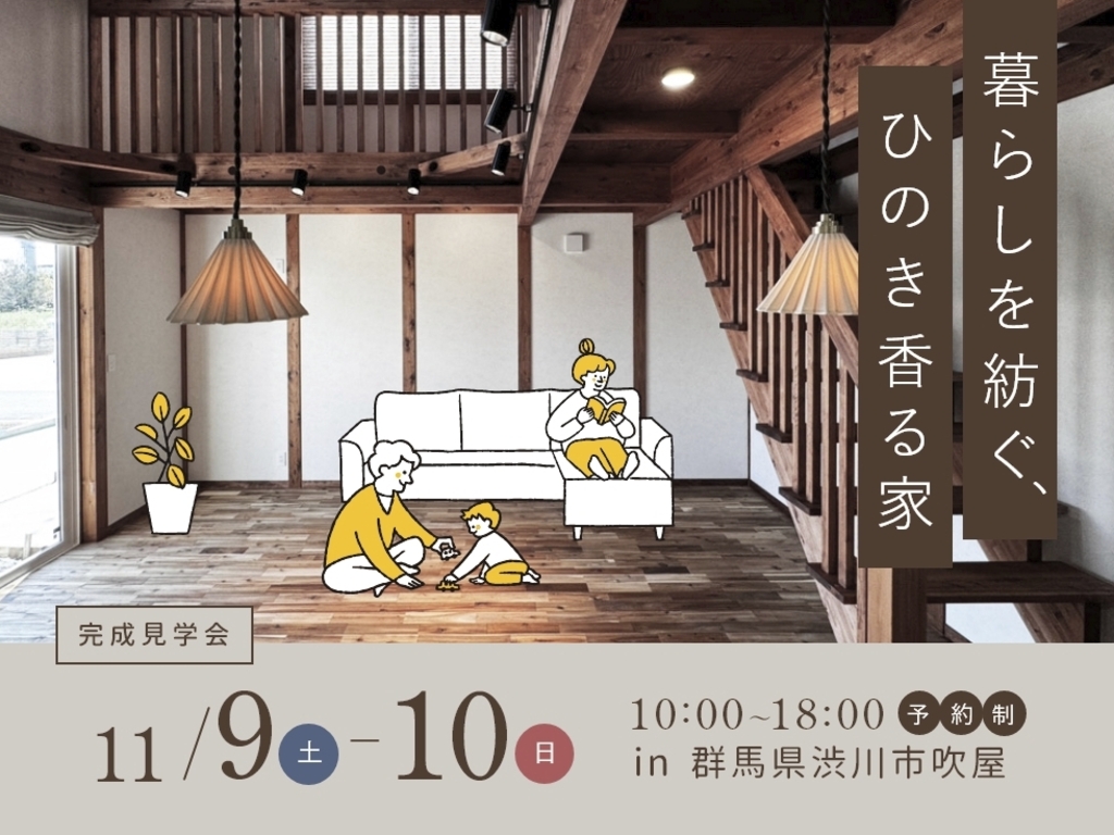 お客様のご厚意により、群馬県渋川市吹屋にて「暮らしを紡ぐ、ひのき香る家」完成邸見学会を開催致します♪