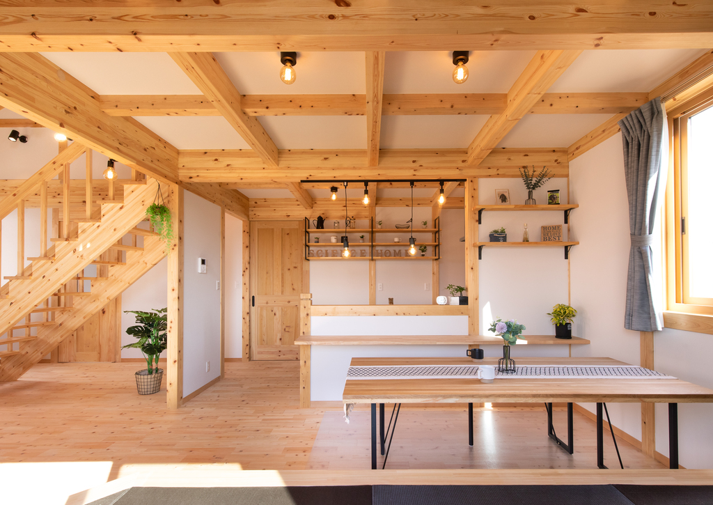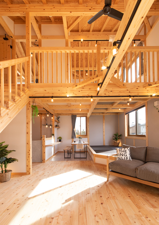 柱や梁が見える「真壁づくり」のデザインでおしゃれさと機能性を兼ね備えた住まいを実現しています。