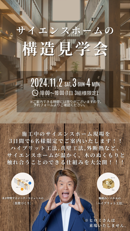 見学会では、実際の構造を間近でご覧いただける貴重な機会です。この機会にぜひ、サイエンスホームの家づくりのこだわりをご体験ください。