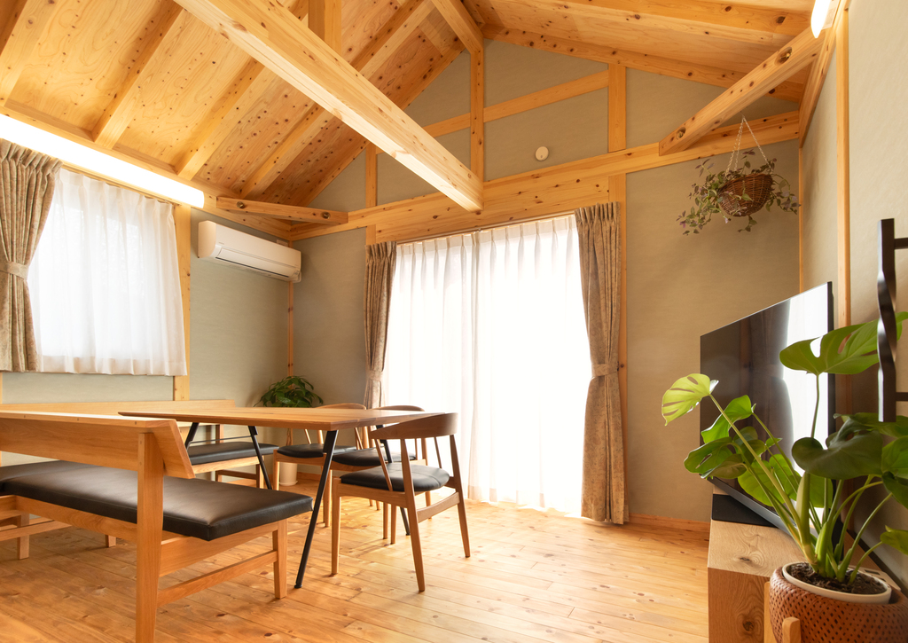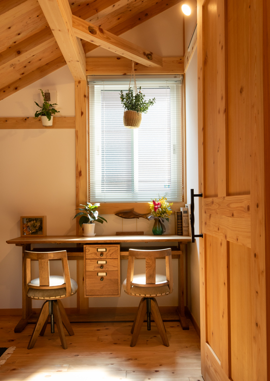 無垢の木材をふんだんに使った、