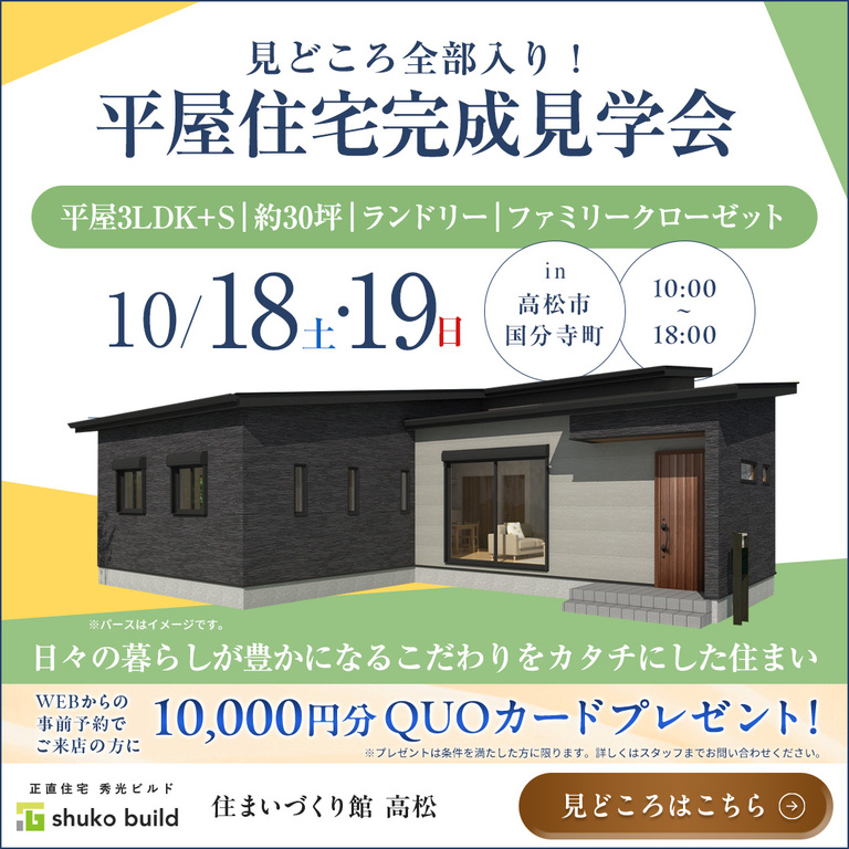 タイトル | ≪高松市国分寺町≫ 平屋住宅完成見学会 |