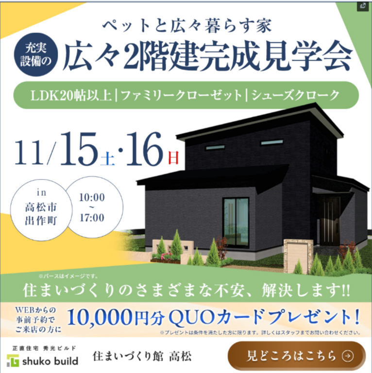 | タイトル | ペットと広々暮らす家の魅力がわかる!見学会開催 |