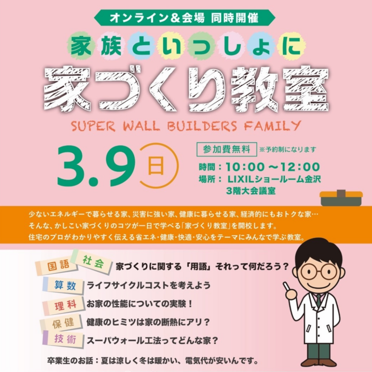 そんな賢い家づくりのコツが1日で学べる『家づくり教室』を開講します!