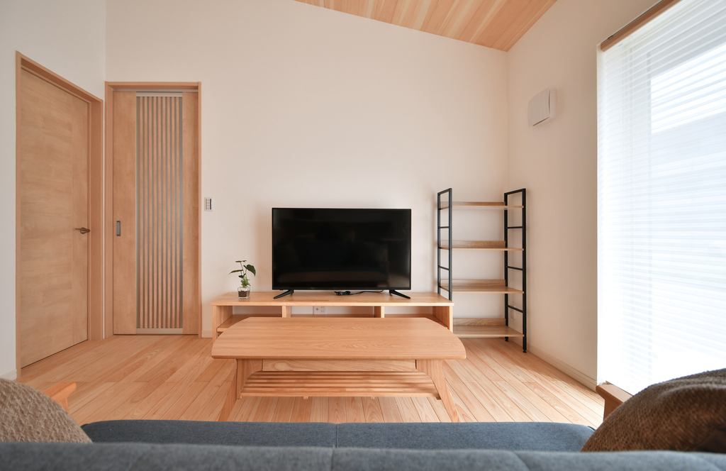 ●木のぬくもり溢れる癒しの空間。勾配天井が開放的なリビング