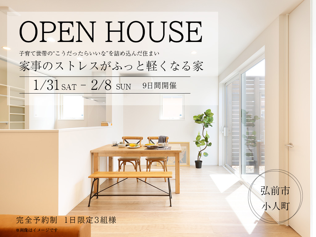 | タイトル | 家事のストレスがふっと軽くなる家 完成見学会 |