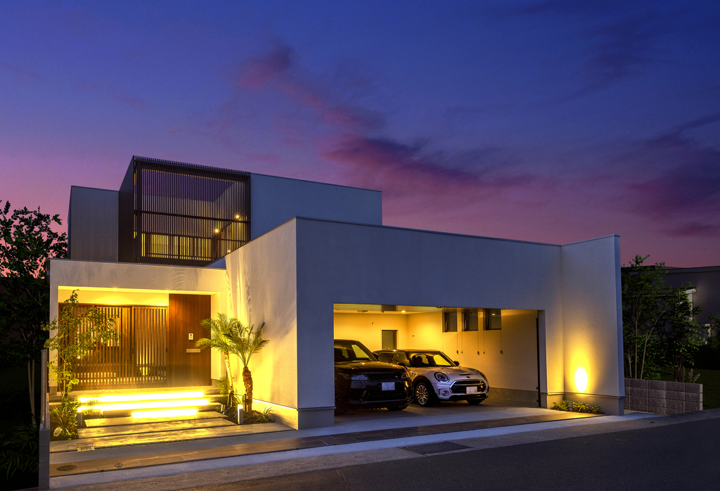 SW構法で実現する大型SUVが2台ゆったり駐車できるガレージ