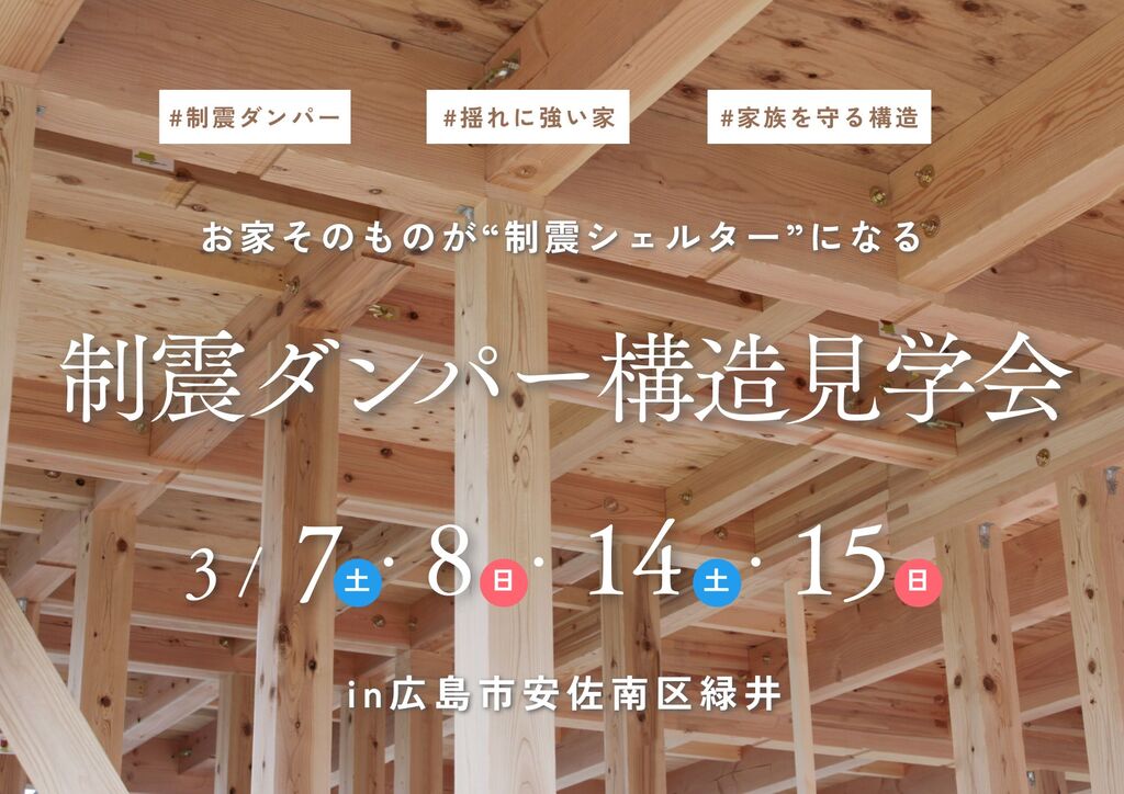 【4日間限定公開】家全体で揺れを吸収する“制震シェルター構造”見学会 in 広島市安佐南区緑井