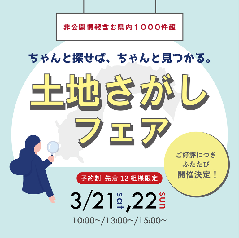 | タイトル | 【県内1000件超】ちゃんと見つかる土地さがしフェア |