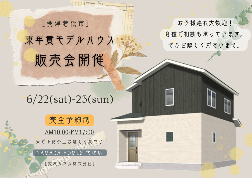 | タイトル | 6/22(土)-23(日)【会津若松市 東年貢】新築モデルハウス 見学会開催! |