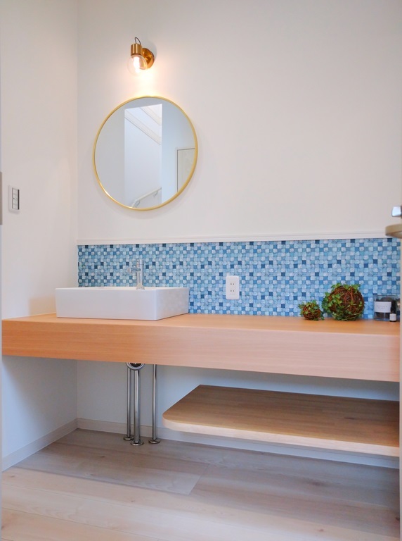 インテリアの邪魔をしない、オープンタイプの洗面化粧台。