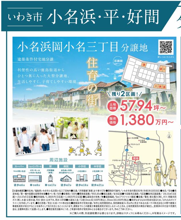 | 交通 | JR常磐線「泉駅」まで車で約17分 | 学区 | 小名浜東小学校、小名浜第二中学校 |