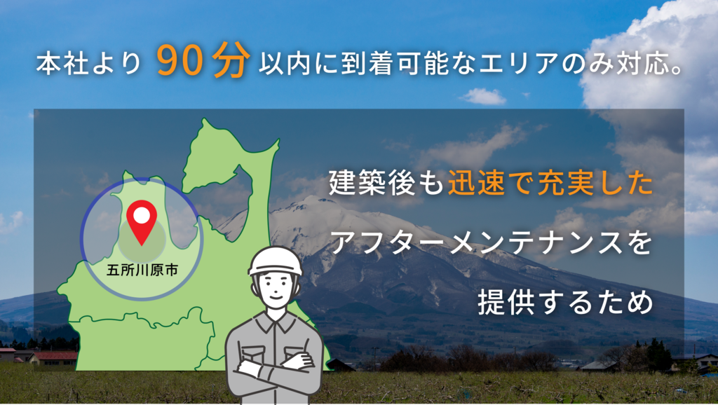 高松工業では、建築後のアフターメンテナンス充実のために本社より90分以内に到着できる範囲に限定して施工をお引き受けしております。また、専属の大工も18人ほど在籍しておりますので、住宅購入後も迅速且つお客様の安心、信頼を大切にしながら対応させていただきます。