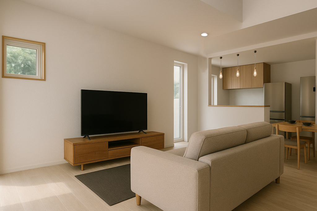 広々リビングと吹き抜けで、日差しがたっぷり差し込む明るい住まい。