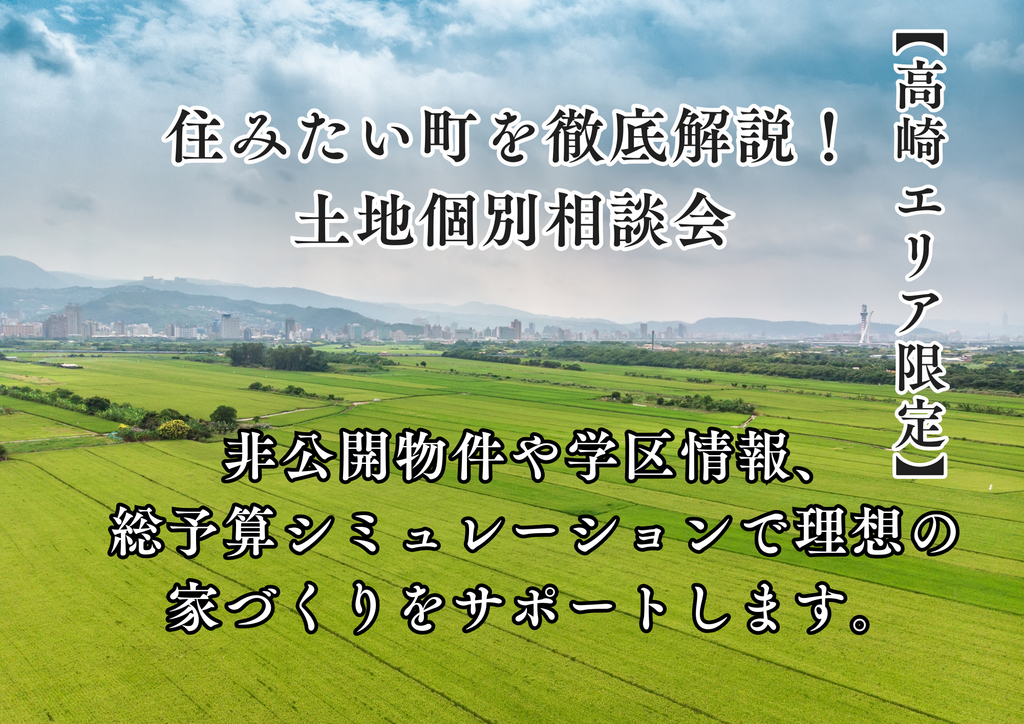 タイトル | 【高崎エリア限定】住みたい町を徹底解説!土地個別相談会★ギフト券付〈10月限定〉 |