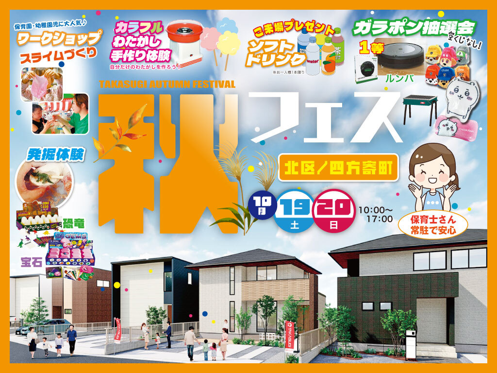 | タイトル | 【10/19(土)・20(日) 2日間限定!】タカスギの秋フェス in北区四方寄町 |