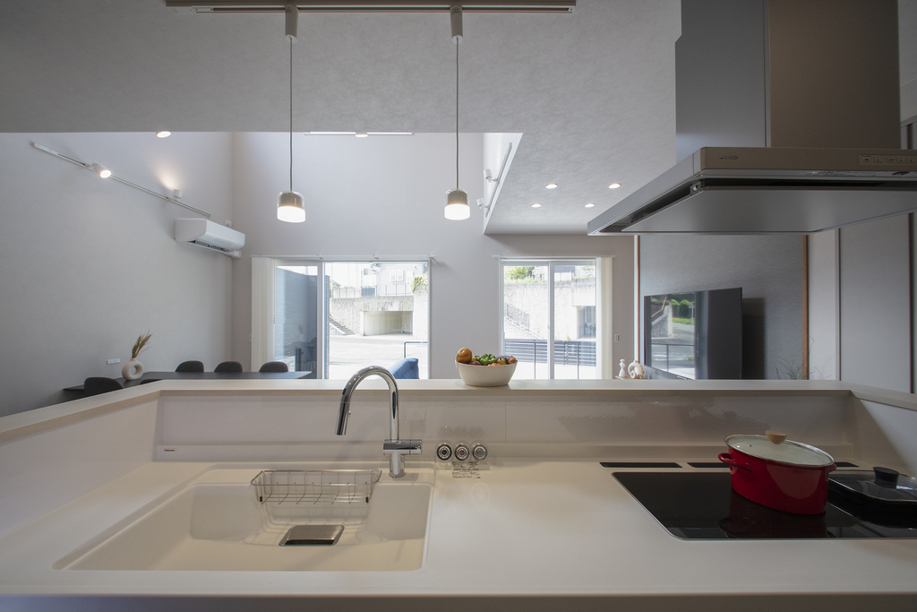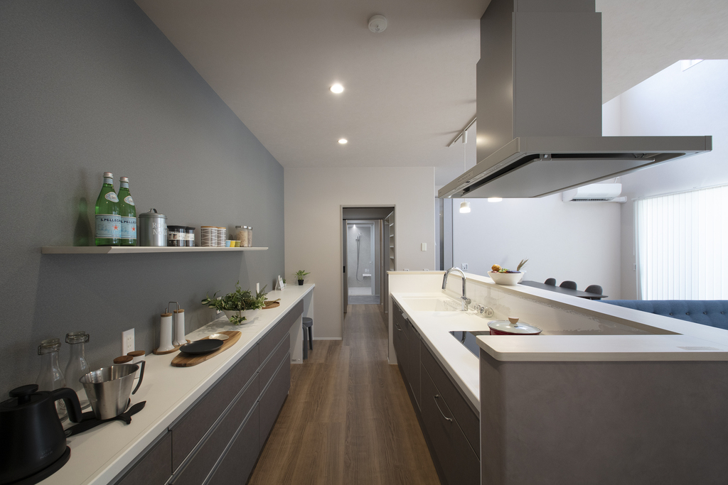 私たちの新しいモデルハウスでは、キッチンからお風呂場までの水廻りを一つにまとめ、